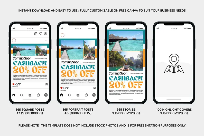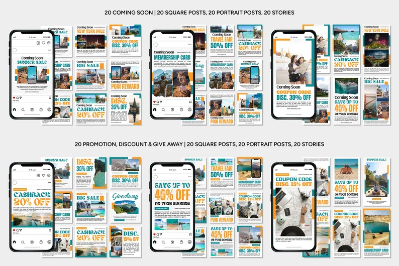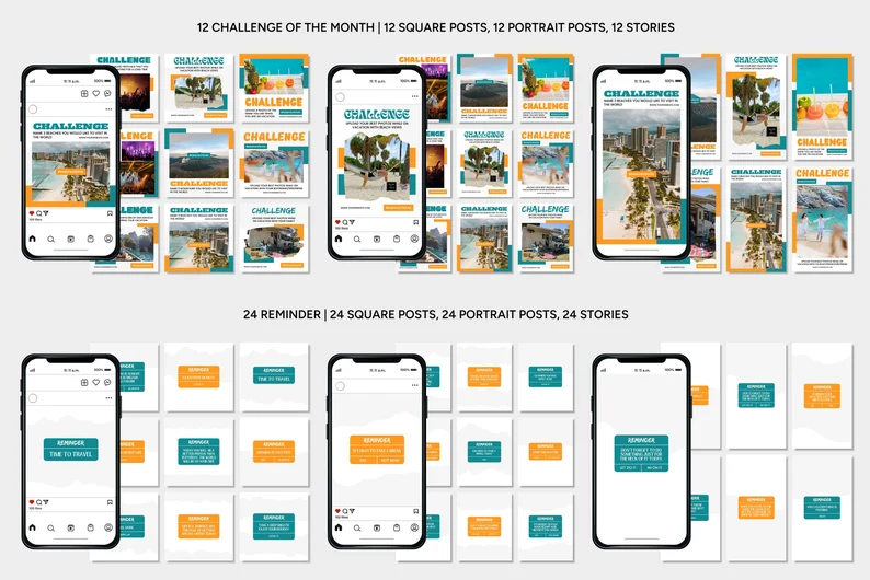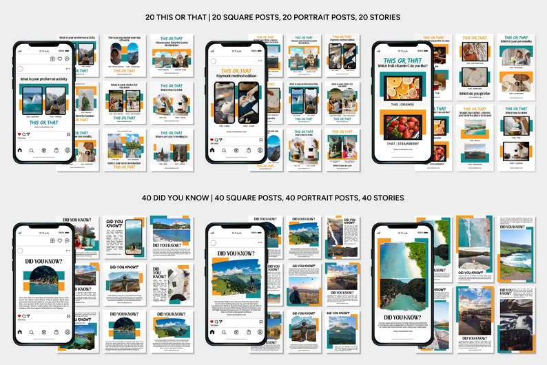 top the Content Struggle! Dominate Instagram with 1195 professionally designed, ready-to-use templates. From stunning posts to engaging stories, this mega bundle is your all-in-one solution for a viral travel feed that saves you time, money, and stress. Your next 12 months of content are sorted!