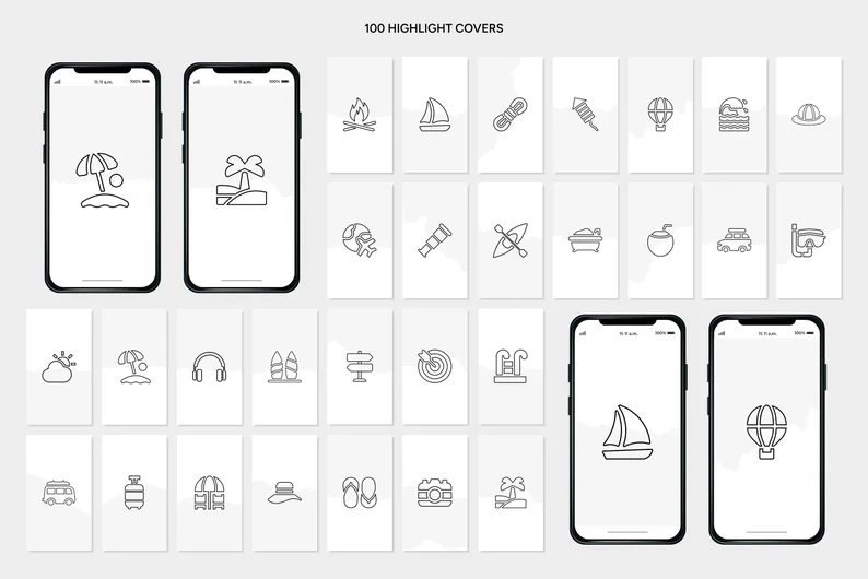 100 Highlight Covers (9:16 | 1080×1920 Px) to beautify your profile.